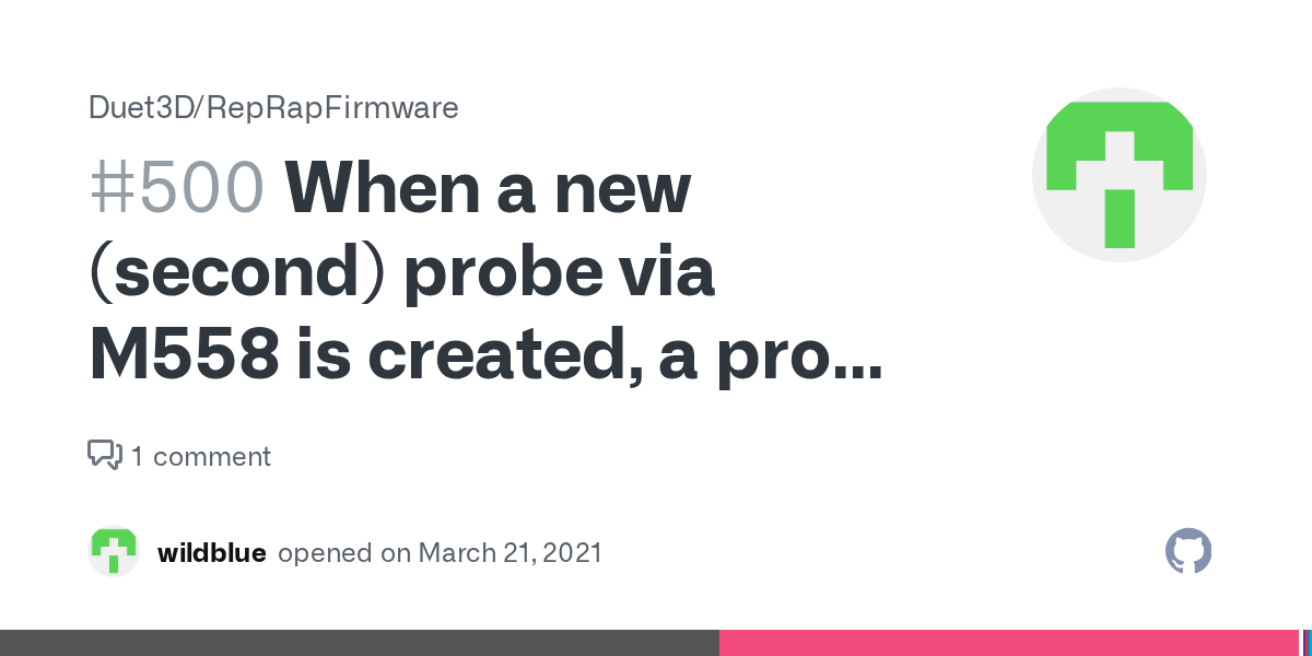 A g31 command to set z probe parameters must come after the m558 command that defines the z probe... Hnnn (rrf3) selects the sensor number to use for temperature compensation when the c and s parameters are used. Send command g30 to do a single z probe. If it is a delta, home all. Mar 01, 2020 · duet 3, rrf 3 rc2, core xy. Analog input or pwm output;